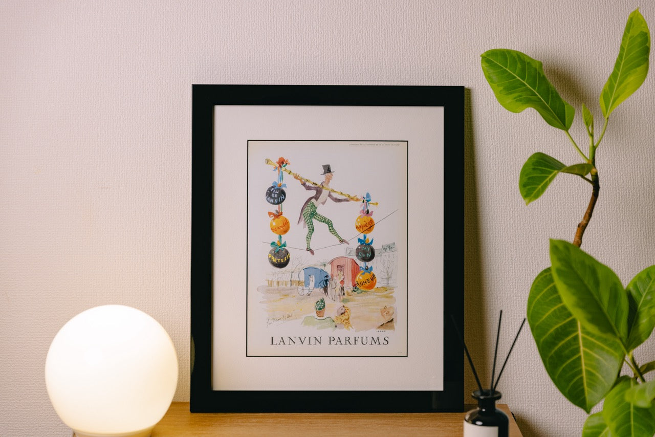 作者:Guillaume GilletアーティストはLANVINの広告を1940年代後半から1950年代まで数多くの作品を手掛けました。サーカスをモチーフに香水を描いた作品です。